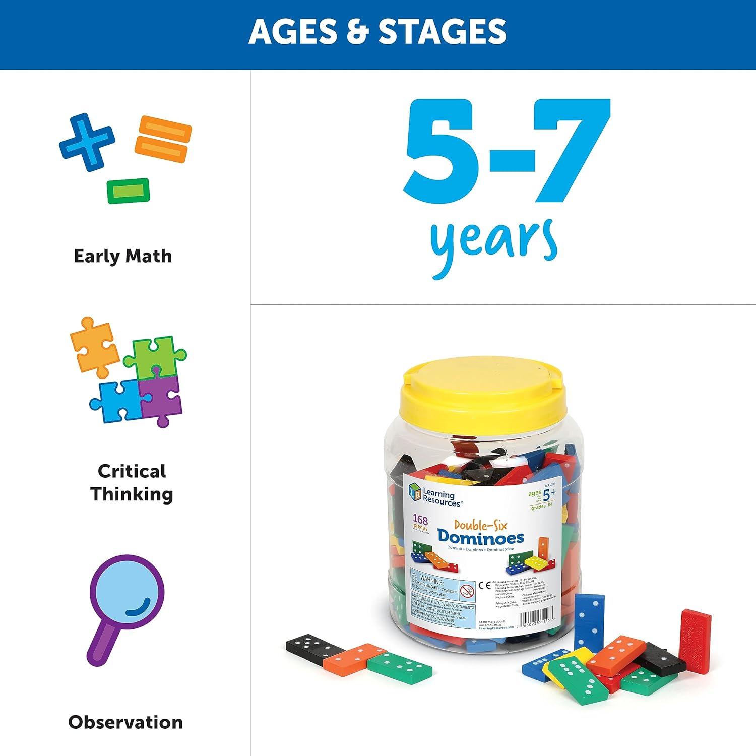 Learning Resources Double-six Dominoes In Bucket, Teaching aids, Math Classroom Accessories, 168 Pieces, Ages 5+(Small)