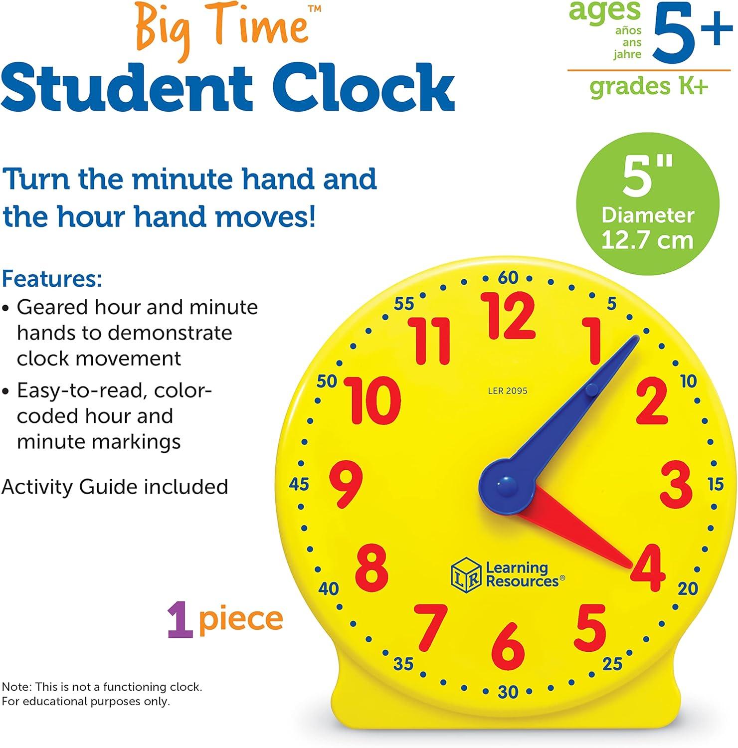 Learning Resources Big Time Student Clock, Teaching & Demonstration Clock, Develops Time and Early Math Skills, Ages 5+, Clock for Learning, 12 Hour,Back to School Gifts(Clock)